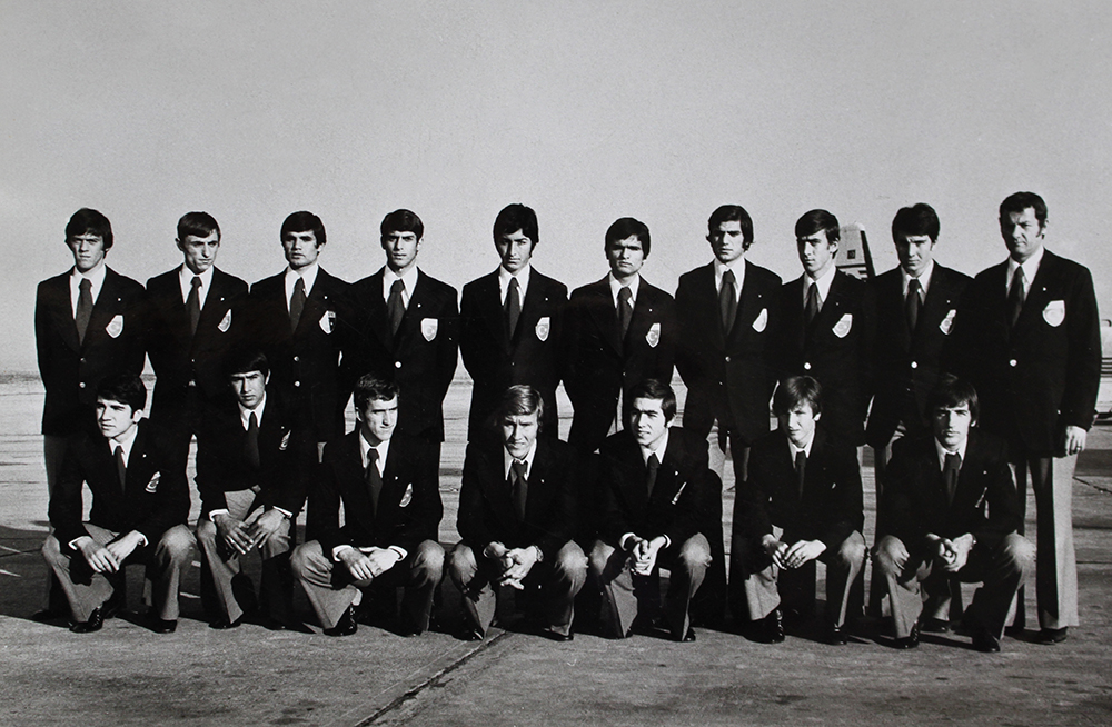 Genç milli takım, 2 Aralık 1972’de Tiflis’te oynayacağı Sovyetler Birliği maçına gitmek üzere, Ankara Esenboğa havaalanında. Soldan sağa ayaktakiler: Turgut Gülez (Manisaspor), Kemal Batmaz (Bursaspor), Kasım (Gençlerbirliği), Müjdat Afşin (Kocaelispor), Sadık işcan (Ankaragücü), İsa Ertürk (Kütahya), İhsan Kavak (G. Birliği), Kemal Dikmen (Samsunspor), Oktay Akgün (Ankaragücü), Necdet Niş. Oturanlar: İsmail Sütçü (Göztepe), Ali Kahraman (Hacettepe), Cemil (Bursaspor), Nihat Saka (Altay), Zafer Dinçer (Ödemiş), Mustafa Ergücü (İzmirspor), İbrahim Ejder (Sakaryaspor).