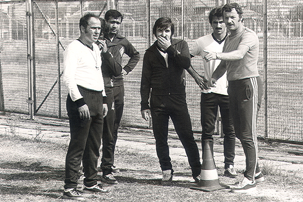 Necdet Niş antrenörlükteki ilk yıllarında Kırıkkalesporlu idareci ve futbolcularla.