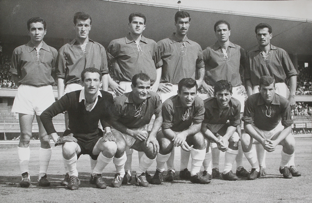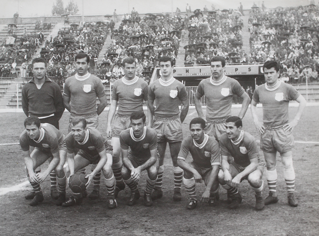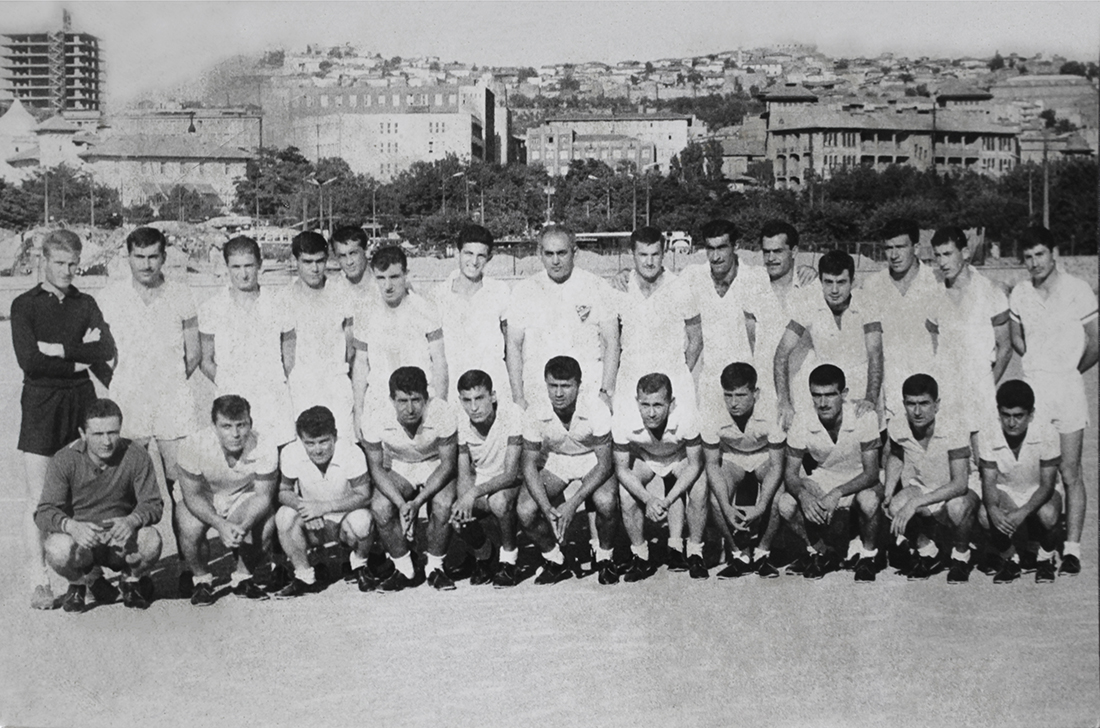 Hacettepe 1963-64 sezon açılışında, 19 Mayıs Stadı dış sahasında. Bir önceki sezon da takımı çalıştıran Sabri Kiraz, üst sırada ortada. Yanında Necdet Niş, Horvat Aydın ve Halis var.