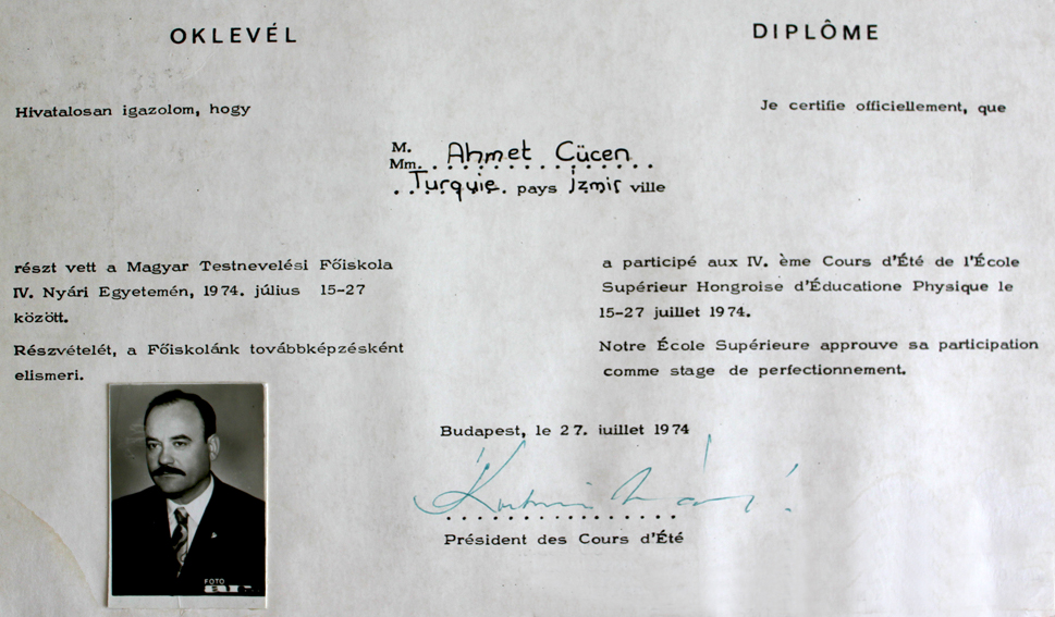 | Macaristan Spor Akademisi’nden aldığı diploma. |