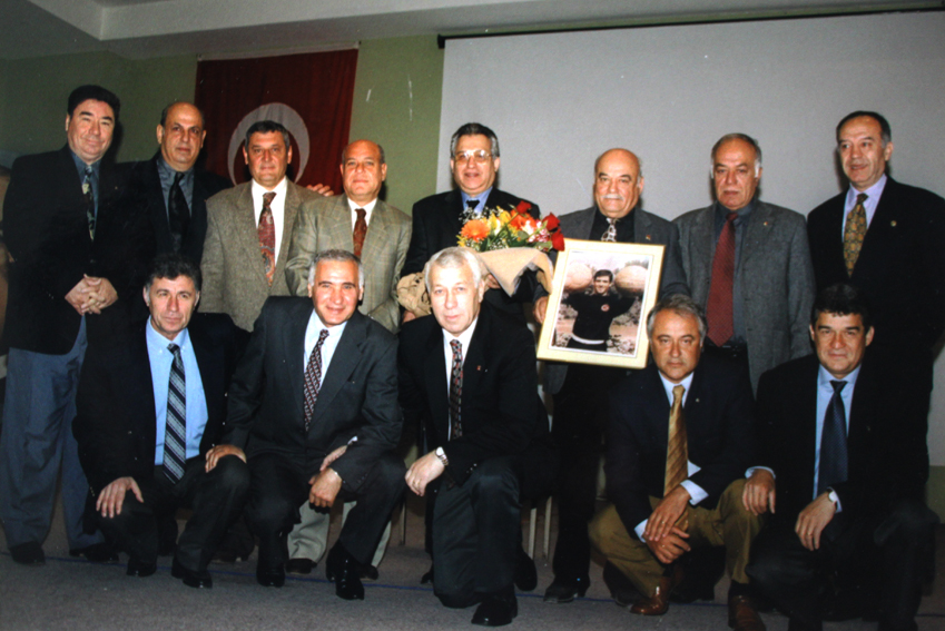 | Göztepe’nin efsane kadrosundan hayatta kalanlar bir arada. Ahmet Cücen ayakta, sağdan üçüncü. |