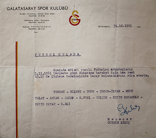 O yıllarda pek çok futbolcu üst düzey bir kulüp tarafından keşfedilmeden önce amatör kulüplerin formasını terletirken onun ilk durağı Galatasaray genç takımı olmuş: “Bir kiracımız vardı, bizim maçlarımızı seyrederdi. Doğan Koloğlu yakın arkadaşıymış. Ona hitaben bir kart yazdı. Kartı genç takımı çalıştıran Doğan abiye götürdüğümde, ‘Ali Sami Yen’e antrenmana gel,’ dedi. Böylece 1957 senesinde Fatih’ten Mecidiyeköy’e antrenmanlara gidip gelmeye başladım. O zaman orası şehrin sonu gibiydi. O sırada Sultanahmet Ticaret Lisesi’nin orta kısmına devam ediyordum. İlk idmana çıktığımda çok heyecanlıydım. Doğan Hoca beni sol açığa koymuştu. Avni diye bir kaleci vardı, genç takımın dışında bazen A takımda da oynardı. Ben mahallede arkadaşlarıma, ‘Avni’ye karşı oynadım,’ diye hava atıyordum. Hoca beni idmanlarda beğenince kadroya aldı ve lisans çıkarıldı. Sol açığın dışında orta sahada da oynadım. Takım arkadaşlarım arasında Ergün Acuner, Mesut Şen, Sabri Dino, Uğur Köken gibi sonradan ünlenen isimler vardı. Daha sonra genç takım kaptanlığı da yaptım.”