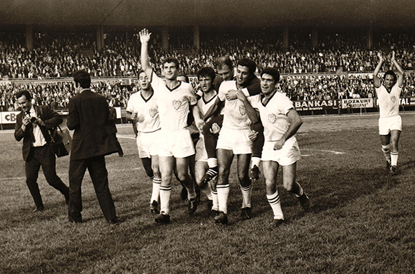 “O sırada Vefa Stadında benim için çok önemli bir maç oynadık Adana Demirspor’la. İlk yarıyı 1-0 önde kapadık. İkinci yarı Demirspor durumu 1-1 yaptı. Maç böyle biterse durumumuz çok kritik bir hale geliyordu, kazanırsak iddiamız devam edecekti. Artık maçın sonları oynanıyordu. Edirnekapı tarafındaki kaleye korner atışı kullandık. Ben bek oynuyordum. Kornere gittim. Hilmi topu ortaladı. Ben ön direkteydim, topa bir dokunmamla gol oldu. Tribünler ayağa kalktı, çocuklar üstüme atladı. Seyircilerden bayılanlar oldu. Maçı 2-1 aldık. O zaman Cumartesi-Pazar üst üste maçlar oynanıyordu. Biz maçlarımızı bitirdik ve 42 puanla tamamladık. Bursaspor’un Şeref Stadı’nda Kasımpaşa ve Beyoğluspor’la maçları vardı ve 40 puana sahipti. Bizim averajımız iyi ama üç puan alırlarsa onlar şampiyon oluyordu. Biz topluca maçları seyretmeye gittik. İlk gün iddiasız Beyoğluspor ummadığımız şekilde 2-1 kazandı. Ertesi gün Bursaspor Kasımpaşa’yı 2-1 yendi ama sonuçta biz averajla şampiyon olduk.”
