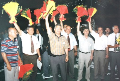 | Büyük Mehmet (soldan ikinci) takım arkadaşlarıyla bir törende. |