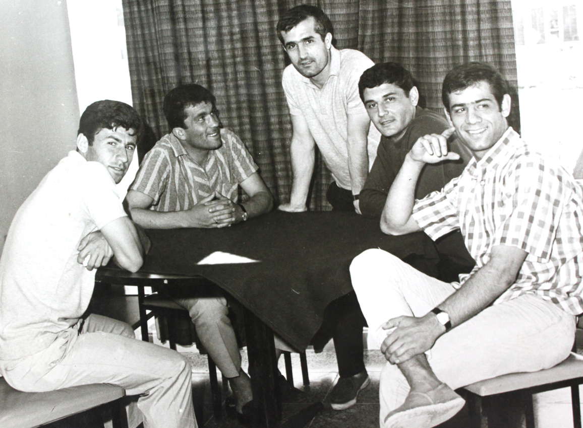 | (Soldan) Ertan Öznur, Hüseyin Yazıcı, Gürsel Aksel, Mehmet Aydın, Ali Artuner bir kamp sırasında. |