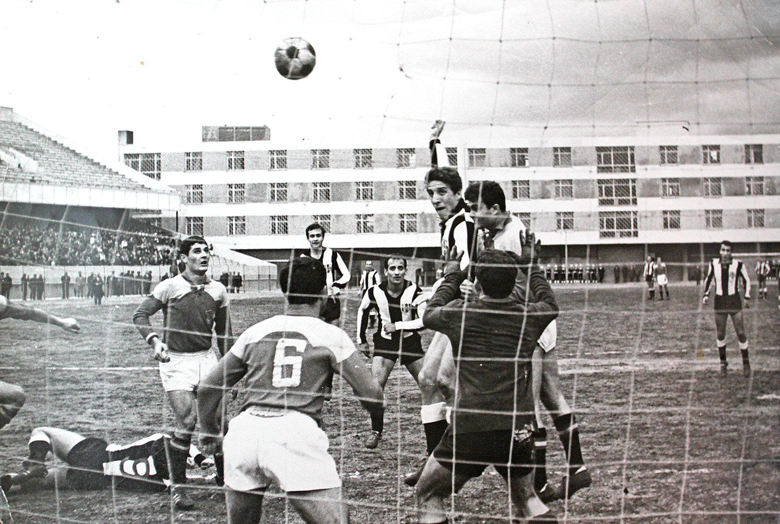 | Bir Göztepe – Beşiktaş maçında Küçük Ahmet topa kafa vurmuş. Büyük Mehmet onu izliyor. |