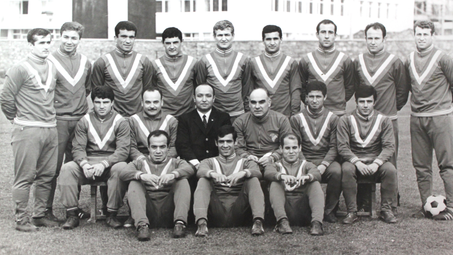 | Denizgücü takımında iki Göztepeli: Mehmet Aydın (sağdan üçüncü) ve Nevzat Güzelırmak (sağdan dördüncü). |