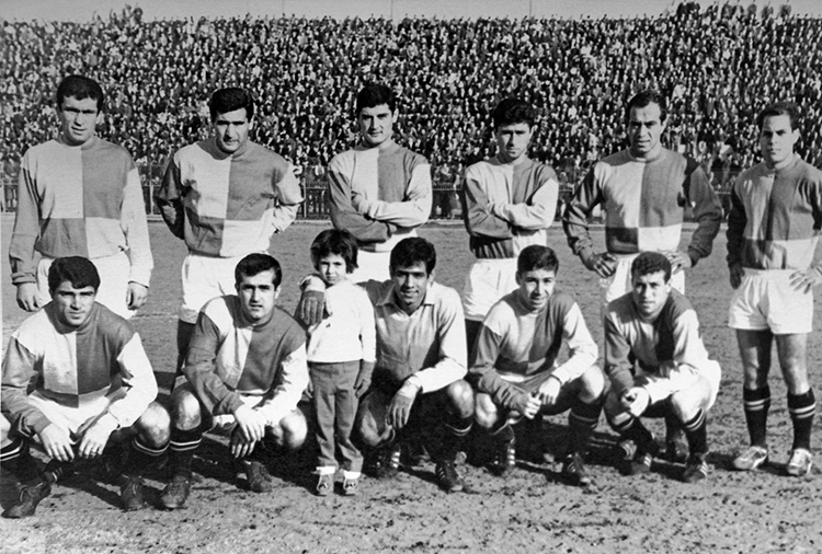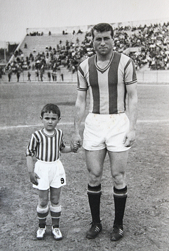 “Göztepe’nin simgesi olan şu tepenin eteklerinde doğup büyüdüm. Biraz ileride, deniz tarafında Halk Bankası vardı. Orada kasap dükkânımız vardı seneler boyunca. Orada kiracıydık, sonra yolun karşı tarafında dükkân aldık. Yani ben doğduğum gün Göztepeliydim.” Orhan Berent’le birlikte Güzelyalı’da, caddeye bakan evinde Halil Kiraz’la karşılıklı oturuyoruz. O muazzam Göztepe takımının üyelerinden biri olan Halil Kiraz’la, herkesin bildiği adıyla “Bombacı Halil” ile sohbet ediyoruz. Sohbetimize eski fotoğraflar, onun ve Göztepe’nin başarılarını manşete taşıyan gazeteler eşlik ediyor.