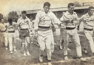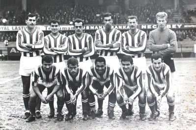 1959’da Atatürk Erkek Lisesi takım kaptanı olarak Şeref Stadında bir maçtan önce. Maçı ünlü hakem Feridun Kılıç yönetiyor. |