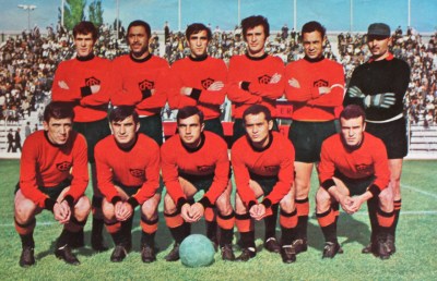 Hacettepe takımı İnönü Stadında. Ayaktakiler: Yılmaz, Onursal, Halis, Aydın, Necdet, Baskın. Oturanlar: K. Suphi, Nuri, Çetin, Metin, Turan. |