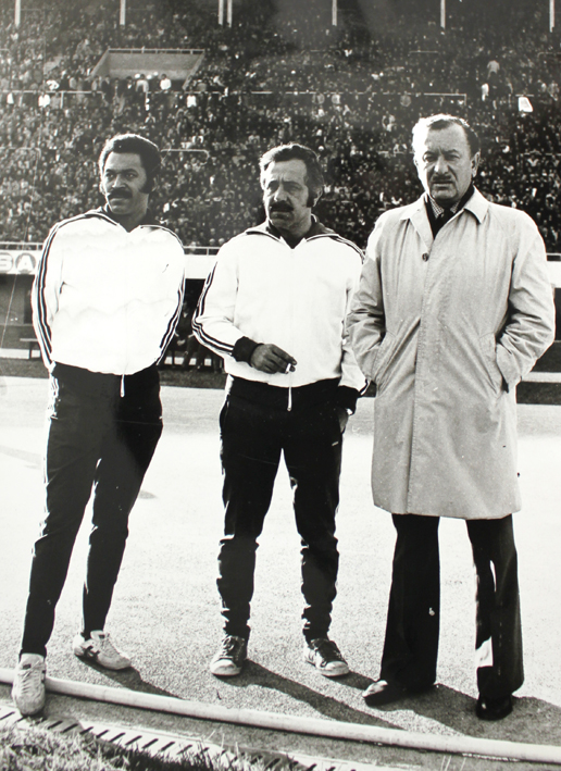 Kocaelispor’da yardımcısı eski futbolcu Vefalı Muhterem Ar, kulüp doktoru ve umumi kaptan Mehmet Sadık Efe’yle birlikte. |