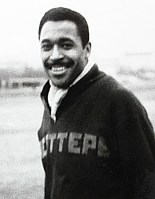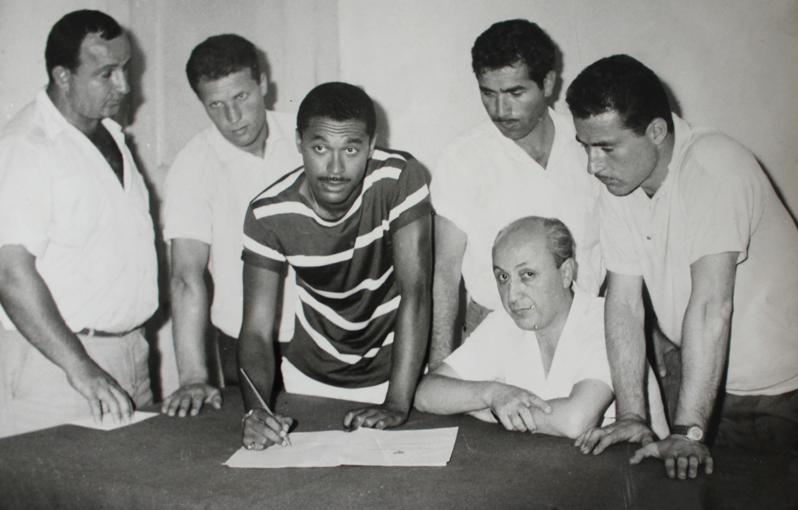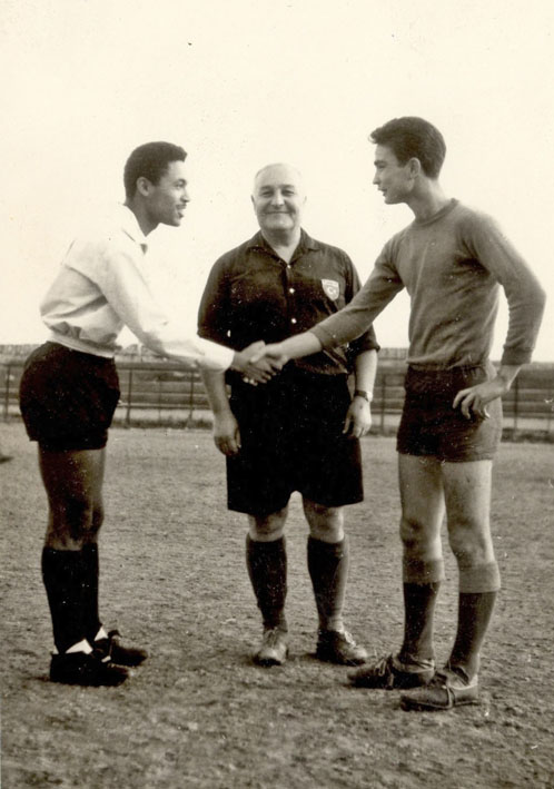 1959’da Atatürk Erkek Lisesi takım kaptanı olarak Şeref Stadında bir maçtan önce. Maçı ünlü hakem Feridun Kılıç yönetiyor. |