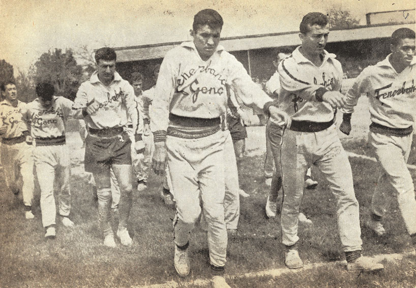 Fenerbahçe Stadında bir idman. Sağ başta Çetin Güler. Yanında Avni Kalkavan ve Necdet Çoruh. Arkada Seracettin Kırklar. |