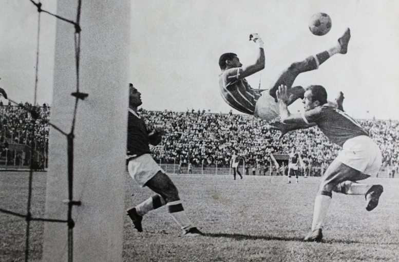 Dönemin foto muhabiri Yavuz Donat’ın Ulus gazetesi için çektiği güzel bir poz. Çetin Güler’in ifadesiyle foto muhabirleri ondan maç sırasında röveşata yapması için özel istekle bulunurmuş. |
