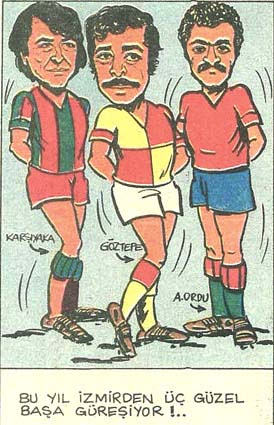 1980-81 sezonunda 2. Ligde şampiyonluğa oynayan üç İzmir takımının antrenörleri Turgay Meto, Erkan Velioğlu ve Çetin Güler Milliyet’te Mesut Yavuz’un karikatürüne konu olmuş.