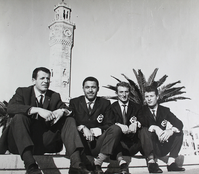 Bir İzmir seyahatinde bazı Kasımpaşalı oyuncular. Kirlo Yılmaz, Çetin, Adnan ve kaleci Özkay. |
