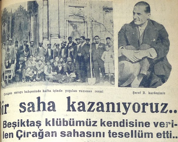 Çırağan Sarayının nasıl stada dönüştüğünün öyküsünü Türkspor dergisi 14 Ocak 1933 tarihli sayısında şu şekilde anlatmış: “Halk Fırkasının yüksek delaletile Cumhuriyet hükümetimiz sporculara eşsiz bir yardımda daha bulundu. Muhterik (yanmış) Çırağan sarayının arsası Beşiktaş spor kulübüne idman sahası olarak verildi. … Beşiktaş klübü tarafından saha teslim alınırken güzel merasim yapılmış kurbanlar kesilmiştir. Bundan sonra sahanın tahdidi ameliyesine başlanacaktır. Bu münasebetle şimdi rahatsız bulunan Beşiktaş klübünün en emekdar idarecisi olan ve klübüne yaptığı sayısız hizmetler arasında bu sahanın temini için bütün gayretile çalışan Şeref Beyi gene eskisi gibi klübünün başında ve Beşiktaşlıları yeni güzel sahalarında muvaffakiyet peşinde görmeği candan diliyoruz.”