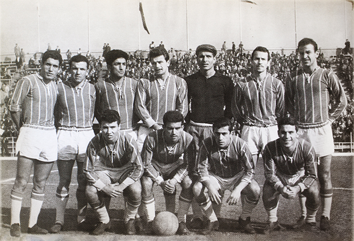 Feriköy’ün 1960-61 kadrosu. Soldan sağa ayaktakiler: İsmet Yurtsü, M. Ali Gürses, Erdinç Küçükkorkmaz, Ahmet Açıkgöz, Necdet İnanç, Aleko Konstantinis, Münacettin Barut. Oturanlar: K. Rıdvan Kaner, Hüseyin Mevlüt, B. Rıdvan Saraçoğlu, Kaplan Öğretmen. (Ercan Bodur)