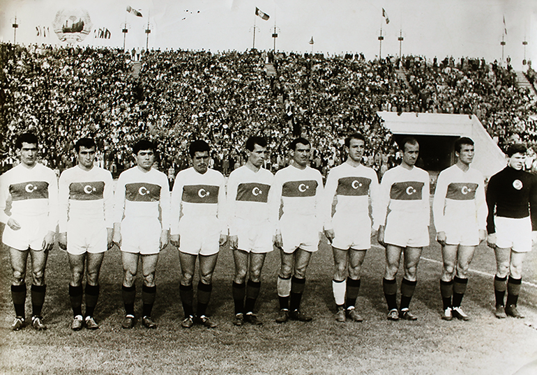 14 Mayıs 1961’de Romanya B takımını 2-0 yenen B Milli Takım. Soldan sağa: Kaya Köstepen (BJK), Ogün Altıparmak (KSK), Yüksel Gündüz (FB), İsmet Yurtsü (Feriköy), Gürcan Berk (İzmirspor), Candemir Berkman (GS), Münacettin Barut (Feriköy), Osman Göktan (FB), Şenol Birol (BJK), Necmi Mutlu (BJK). Kaptan Basri Dirimlili (FB) kadraj dışında kalmış.