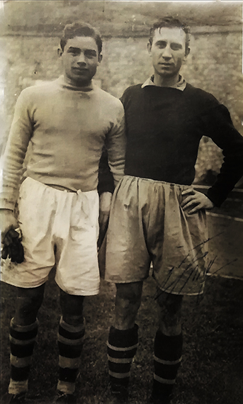 Avusturya’da, otuzlu yılların ünlü İspanyol kalecisi Zamora ile. Arkada Molnar görülüyor.