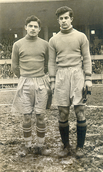 Mahalle arkadaşları Şükrü Ersoy ve Turgay Şeren, ilk kez İstanbul Ligi 1949-50 sezonunda rakip oldukları Galatasaray-Vefa maçı öncesinde.