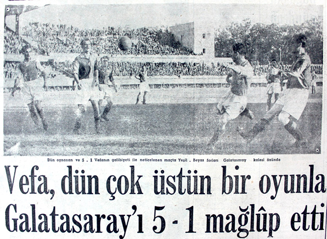 İsrail maçı hiç beklenmeyen bir neticeyle sonuçlanmış ve Milli Takımımız 5-1 yenilmişti. Bu maçtan bir hafta sonraysa Vefa, Galatasaray’la oynamış ve tarihinin en parlak sonuçlarından birini almıştı. Şükrü Ersoy bir hafta arayla yaşadığı üzüntü ve sevinci anlatıyor: “İsrail’deki maçta 5-1 yenildik. Milli Takımımız o zamana göre en iyi takımdı. Gündüzler, Rehalar gibi çok tecrübeli oyuncular vardı. Bir tek ben 19 yaşındaydım. Takım tecrübeliydi ama bir şekilde yenildik. Turgay da Genç Milli Takımın kalecisiydi. Onlar Ankara’da Mısır’ı 3-1 yendiler. Türkiye’ye döndük ama beş tane yedim diye üzüntülüyüm tabii. Bütün arkadaşlar beni teselli ettiler. ‘Biz de Galatasaray’ı yeneceğiz ve Turgay’dan rövanşı alacağız merak etme,’ dediler. Hakikaten maçı 5-1 kazandık. Her gol attığımızda yanıma gelip, ‘Ne haber, daha atalım mı?’ diye soruyorlardı. Ben de ‘Atın tabii, daha beş olmadı,’ diyordum.”
