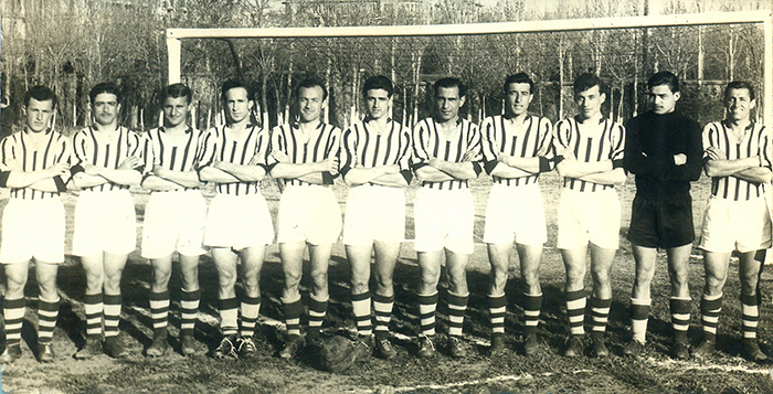 Şükrü Ersoy’un kalesini koruduğu Ankara Karagücü takımı. Sağ başta takım kaptanı Mustafa Ertan (Beton Mustafa). Soldan beşinci Rıdvan Bolatlı.