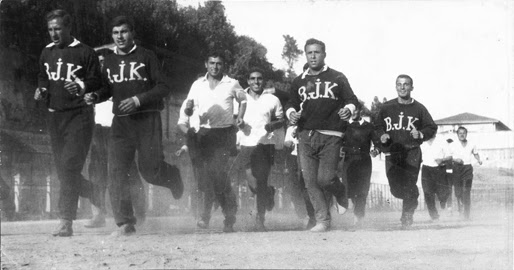 | Şeref Stadında bir idman. En önde Özcan Esinduy ve Coşkun Taş koşuyor. Dördüncü sıradaki Celal Soydan’ın yanında siyah eşofmanlı Kamil Üzülme var. Ali İhsan Karayiğit en arkada görülüyor. |