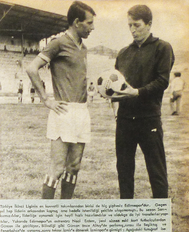 “1967’de tatile gelmiştik. İzmirspor sahasına gitmiştim. Kulübün eski oyuncularından Tarık Gençay’la sohbet ediyorduk. O sırada yanımıza Naci Erdem geldi. 2. Ligde oynayan Edirnespor’a antrenör olmuş. Beni oraya almak istedi. 50 bin lira transfer parası verileceğini söyledi. O zamanlar iyi paraydı bu. Böylece Edirnesporlu oldum. İki sene bu takımda oynadıktan sonra futbolu bıraktım. Ardından kursa gidip antrenör oldum.”