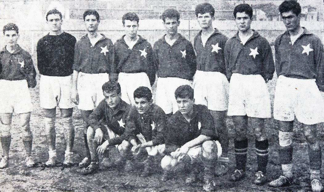 1954 yılının İzmir genç karması. Metin Oktay sağdan dördüncü. Onun solunda geleceğin Altay kaptanı Kazım Yıldız var. Kaleci Akın Barhan. (Ege Ekspres) |