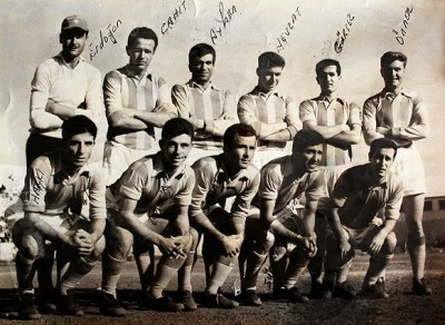 1958-59’da İzmir profesyonel liginin son şampiyonluğunu kazanan Karşıyaka takımı: