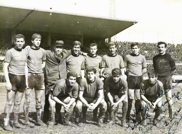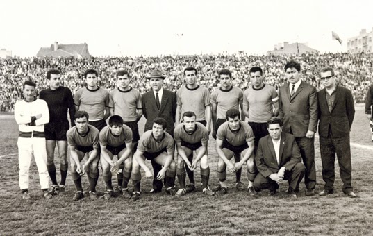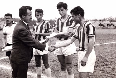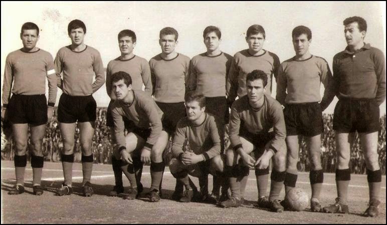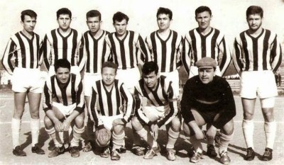 İstanbul Mithatpaşa Stadında bataklığı andıran bir zeminde Beyoğluspor’u 3-1 yenerek şampiyonluk yolunda büyük adım atan Eskişehirspor takımı maçtan sonra. Ayaktakiler: Agop Mehmet, İsmail, başkan Aziz Bolel, Muzaffer, Ayhan, Mahmut, Nihat, kaleci Hakkı. Oturanlar: Hasan, Fethi, Metin, İlhan. |
