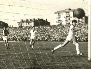 Eskişehirspor’un ilk resmi müsabakası olan 1965-66 sezonundaki Kasımpaşa maçında Fethi Heper kulüp tarihinin ilk resmi golünü atıyor. |