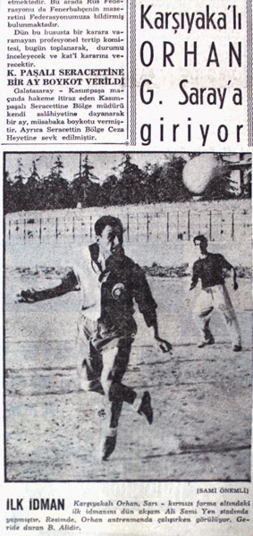 “Karşıyaka Lisesi’ni bitirdikten sonra o zamanki adıyla İzmir Yüksek Ekonomi ve Ticaret Okulu’na girdim. Bu okul daha sonra İktisadi İdari Bilimler Fakültesi haline geldi. 1956’ya kadar Karşıyaka’da oynadım. Dört sezon Karşıyaka formasıyla İzmir mahalli liginde mücadele ettim. Bu arada birkaç kez İzmir Karmasına seçildim. 1956 yazında Fenerbahçe’ye gittim. Fenerbahçe’nin İzmir’de kaleci Hüsnü diye bir temsilcisi vardı. Yaşça Cihat’tan daha büyüktü. O burada futbolcu seçer, kulübe tavsiye ederdi. Tahir abi bizim başkandı. Bir gün Fenerbahçe’nin menajeri Ahmet Erol ve Hüsnü’yle beraber eve geldiler. ‘Orhan hadi kalk İstanbul’a gidiyoruz,’ dediler. Valide bunu duyunca başladı ağlamaya, ‘Ben sensiz ne yaparım,’ diye. Babamı on yaşımdayken kaybetmiştim. İki kardeştik biz, Atilla benden küçüktü. O da Karşıyaka’da kalecilik yaptı. Valide ikimizi de düşkündü. Gelenlere, ‘Siz şimdi gidin ben bir hafta onu oyalarım,’ dedim. Sonunda annem ikna oldu.”