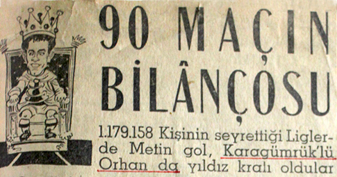 1958-59 sezonu aynı zamanda Orhan Erkmen’in futbolunun zirvesine çıktığı dönem olmuş. Milliyet gazetesinin düzenlediği yarışmada en çok puanı toplayarak ligin yıldız kralı seçilmiş. Milli Lig başladıktan sonra Akşam gazetesinin yaptığı mevkilerinin en iyi oyuncuları tasnifinde de sağ haflar arasında birinciliği almış. Bu vesileyle oynadığı mevkileri sorduğumuz zaman şöyle cevap veriyor: “Asıl mevkim sağ haftı ama iki ayaklı olduğum için sol açık bile oynadım. Yeri geldi, sağ bek ve sol bek de oynadım. Fakat en çok oynadığım mevki sağ haftı.”