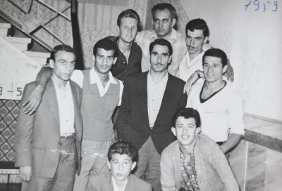 | Sağ baştaki Kenan Buharalı Beytüşşebap’ta mahalle arkadaşlarıyla. Fotoğraf 1939 senesine ait. |