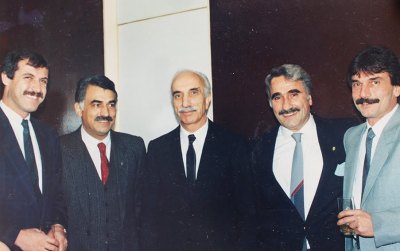 | Çeşitli kuşaklara mensup İstanbulsporlu futbolcular 1987’de bir kokteylde. (Soldan): Yavuz Bentürk, ? , Kaya Çilingiroğlu, Kenan Buharalı, Mete Bozkurt. |