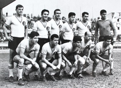 | İstanbulspor’un Erzurum’da Palandöken takımıyla yaptığı özel maçtan önce çekilen hatıra fotoğrafı. Sol başta Mesut Buharalı, yanında Kemal Çilingiroğlu, Ali Mortaş, Ziya Çilingiroğlu ve Kenan Buharalı. |