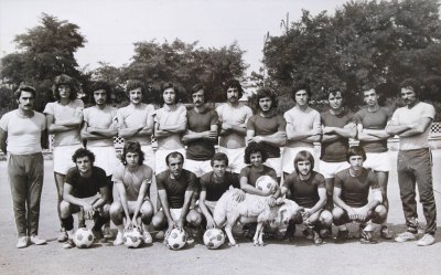 | Bir kamp hatırası. Arkada sol başta kaleci Özkay, yanında antrenör Sabri Kiraz. Orta sıra: Kamil, Ahmet Şahin, Kenan, Güngör Okay. |