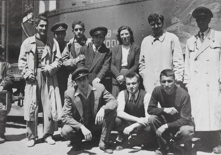 | Sağ baştaki Kenan Buharalı Beytüşşebap’ta mahalle arkadaşlarıyla. Fotoğraf 1939 senesine ait. |