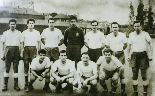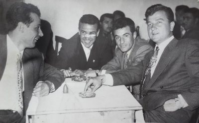 | Soldan sağa: Cahit Ellier, Kamuran Soykıray, Kadri Aytaç ve İzmirspor yöneticisi İbrahim Gürbüz (Boşnak İbrahim). |