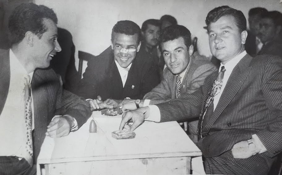 | Soldan sağa: Cahit Ellier, Kamuran Soykıray, Kadri Aytaç ve İzmirspor yöneticisi İbrahim Gürbüz (Boşnak İbrahim). |