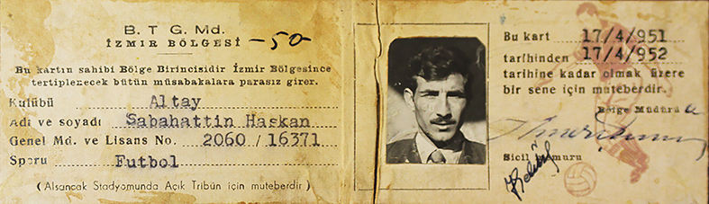 Sabahattin Haskan Gelibolu’da askerliğini yaptıktan sonra, 1949 yılında “Ege’de sivrilen her futbolcu gibi” Altay’a transfer olmuş.2 1949-50 sezonunda, 23 yaşındayken Altay’a katılan genç Sabahattin Altay formasıyla ilk kez Ordu karmasına karşı oynamış: “Spor hayatımda unutamadığım çok maçlarım vardır, fakat Alsancak sahasında oynadığım ve 2-1 kazandığımız ilk Altay- Ordu karması maçında duyduğum heyecanı unutamam.”3 Böylece, Bayram Dinsel, Adil Tügel, Edwin Clark gibi tecrübeli isimlerin yer aldığı kadroda kendine hemen yer bulan genç Sabahattin, İzmir Liginin yanı sıra Milli Küme maçlarında oynamış. 1950-51 sezonunda siyah-beyazlı formayla İzmir Ligi şampiyonluğunu yaşamış.