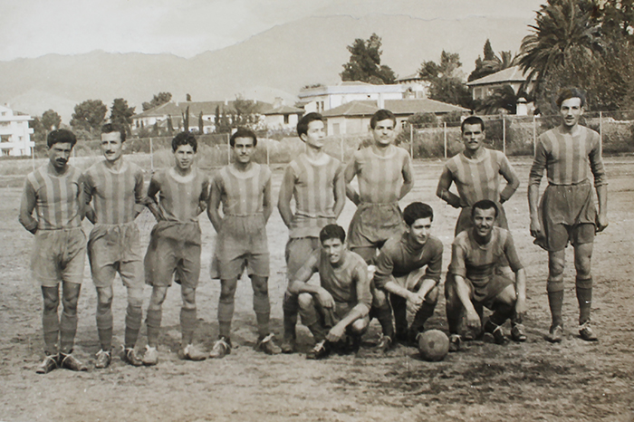 “Biz daha ufakken altı kişilik bir takımımız vardı. Kale arkalarında maç yapardık. Koca bir karpuz koyardık, kim yenerse o alırdı karpuzu. Bazen İzmirspor antrenman yaparken noksan futbolcu oldu mu, ‘Gel buraya,’ derlerdi. Ben ufacıktım daha, onların arasında oynardım. Asansör mahallesinin takımı Yıldırımspor’du. Sami Özok kalecilik yapmış o takımda. İzmirspor’un sahası Talebe Çayırı’nda maçlarımız olurdu. Ben çok uğraştım, Yıldırımspor’u Asansör takımı yaptım. Aramızda para topladık, Arsenal gibi parçalı forma yaptırdık, toplar aldık. Ben ilk olarak bir futbol ayakkabısı yaptırdım 12,5 liraya, bütün arkadaşlar şaşırdı. Hamza Rüstem Pasajı’nda Hakkı Usta vardı, ona yaptırmıştım. Bir de Yeni Sinema’nın orada Ahmet Şamar vardı. Karataş Ortaokulu’nun karşısında İngiliz Bahçesi diye bir arazi vardı. Orada top oynardık. Bir de Asansör’ün altında, çıkınca sol tarafta bir arsa vardı, orada maç yapardık Yahudilerle.”