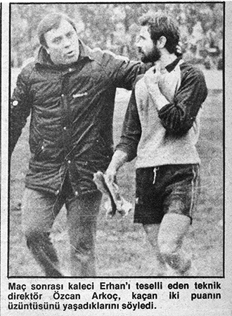 Kocaelispor’da, Türkiye Birinci Ligi’ndeki ilk sezonundan sonra genellikle her sezon bir teknik direktör değişikliği yaşanmış. 1983-84 sezonunda eski milli kaleci Özcan Arkoç görev yapmış fakat o da sezonu tamamlayamamış. Özcan Arkoç’la ilgili şunları söylüyor Erhan Arslan: “O sezon bir ara parasal sorunlar oldu, ‘Hocam, izin verirsen ben oynamayacağım,’ dedim. ‘Burada ekonomik sıkıntılar çekiyorsun ama benden daha çok yeteneklerin var, bunu seni motive edeyim diye söylemiyorum. Sakın işin peşini bırakma, başka kulüplere gidersin,’ dedi. Tabii bu sözler beni ikna etmişti. Çok dürüst ve iyi insandı. Uzun yıllardan beri Almanya’da yaşadığı için biraz sıkıntı yaşadı.”