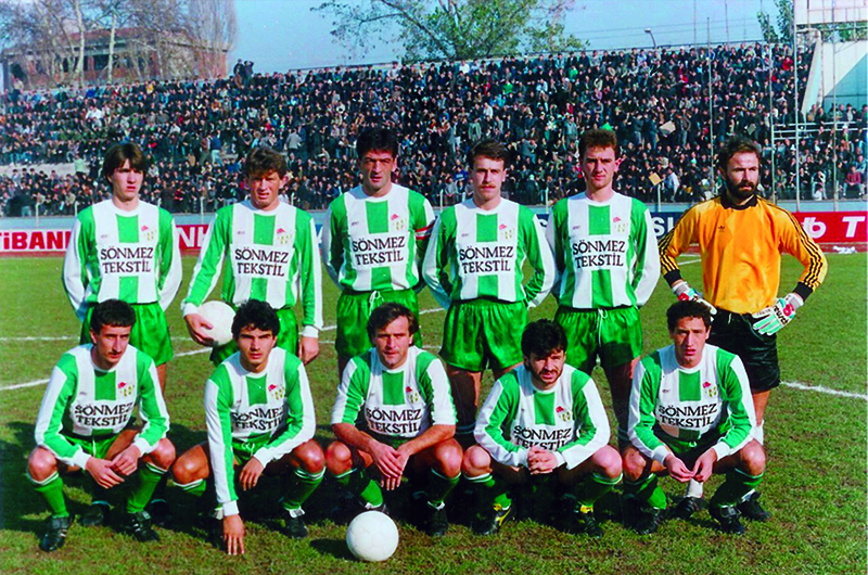 1987-88 sezonunda yeni takımı Bursaspor olmuş Erhan Arslan’ın. Yeni takımına transfer olduğunda, muhtemelen dünya tarihinde bir örneği daha olmayan bir garabete de tanıklık etmiş. Önceki sezon ikinci lige düşen Bursaspor, sezon başlayıp bu ligde bir maç yaptıktan sonra siyasetçilerin tepeden inme aldığı bir kararla tekrar birinci lige çıkarılmış. “Beni Bursaspor uzun zamandır istiyordu. Cavit Çağlar vasıtasıyla teklif gelince oraya gittim. Bursaspor’a gittiğimde ikinci lige düşmüştü. Cavit Çağlar çok iyi bir kadro kurup tekrar çıkmayı hedeflemiş. Dört oyuncu gittik biz oraya: ben, Fenerbahçe’den Şenol, Eskişehirspor’dan santrfor Ahmet Kılıç, bir de Çetin vardı. Fakat Cavit abiyi kızdırmışlar, almamış takımı. O var diye gittik biz. Eski futbolculardan Orhan Özselek başkan olmuştu, anlaştık, kaldık orada. İlk maçı Aydınspor’la oynadık ve 4-0 yendik. Kalemize top gelmeden maç bitti. İkinci ligde o maçı oynamıştık, ondan sonra dediler ki sizi birinci lige aldık ve sezonu beşinci bitirdik!”