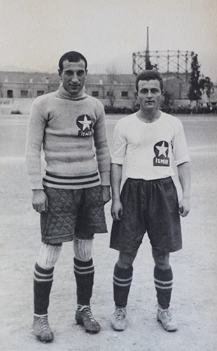 İzmirspor’dan Beşiktaş’a transfer olan kaleci Feyzi Büyükyıldırım ve Tarık Gençay, İzmir Karmasının bir maçından önce.
