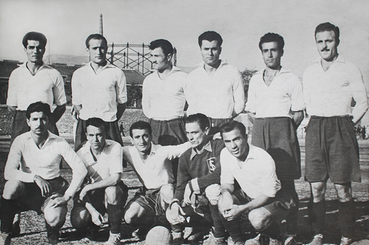 İzmirspor’un 1950’deki bir on biri. Soldan sağa ayaktakiler: Avni Aksoy, Salih, Fikret Özırs, Ahmet, Durmuş, Hüsamettin Günkut. Oturanlar: Tarık Gençay, Mehmet Güzelsever, Emin Terzioğlu, Doğan Emültay, Necati.