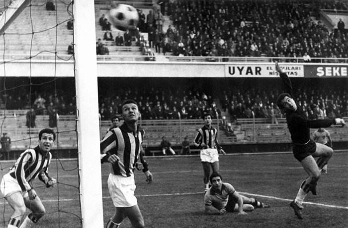 Fenerbahçe ile Galatasaray arasında 5 Ocak 1958’de oynanan ve 1-1 sona eren İstanbul Profesyonel Ligi müsabakasında yaşanan bir tartışma anı. 1: Şeref Has, 2: Ahmet Karlıklı, 3: Metin Oktay, 4: Şirzat Dağcı, 5: Salim Cavunt, 6: Turhan Bayraktutan, 7: Kadri Aytaç, 8: Can Bartu, 9: İsfendiyar Açıksöz, 10: Coşkun Özarı, 11: Lefter Küçükandonyadis, 12: Naci Erdem, 13: Necdet Çoruh.
