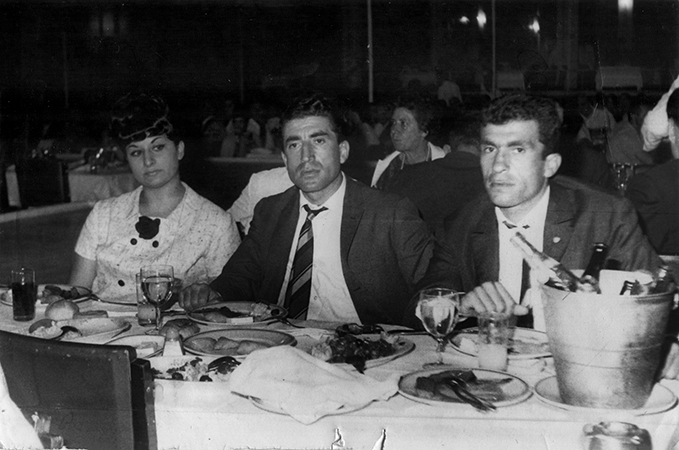 Bir yemekte eşi ve çocukluk arkadaşı, Fenerbahçeli Hüseyin Yazıcı ile.